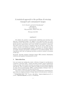 Everitt, R. and Glendinning, R. H. (2009) A statistical approach to the problem of restoring damaged and contaminated images. Pattern Recognition, 42 (1). pp. 115-125. ISSN 0031-3203 doi: 10.1016/j.patcog.2008.06.009
