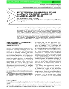 Entrepreneurial opportunities, implicit contracts and market making for complex consumer goods.