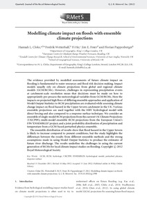 The evidence provided by modelled assessments of future climate impact on flooding is fundamental to water resources and flood risk decision making. Impact models usually rely on climate projections from global and regional climate models (GCM/RCMs). However, challenges in representing precipitation events at catchment-scale resolution mean that decisions must be made on how to appropriately pre-process the meteorological variables from GCM/RCMs. Here the impacts on projected high flows of differing ensemble approaches and application of Model Output Statistics to RCM precipitation are evaluated while assessing climate change impact on flood hazard in the Upper Severn catchment in the UK. Various ensemble projections are used together with the HBV hydrological model with direct forcing and also compared to a response surface technique. We consider an ensemble of single-model RCM projections from the current UK Climate Projections (UKCP09); multi-model ensemble RCM projections from the European Union's FP6 ‘ENSEMBLES’ project; and a joint probability distribution of precipitation and temperature from a GCM-based perturbed physics ensemble. The ensemble distribution of results show that flood hazard in the Upper Severn is likely to increase compared to present conditions, but the study highlights the differences between the results from different ensemble methods and the strong assumptions made in using Model Output Statistics to produce the estimates of future river discharge. The results underline the challenges in using the current generation of RCMs for local climate impact studies on flooding. Copyright © 2012 Royal Meteorological Society