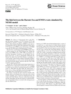 Stepanov, V.N., Zuo, H. and Haines, K. ORCID: https://orcid.org/0000-0003-2768-2374 (2012) The link between the Barents Sea and ENSO events simulated by NEMO model. Ocean Sciences, 8. pp. 971-982. ISSN 1812-0792 doi: 10.5194/os-8-971-2012