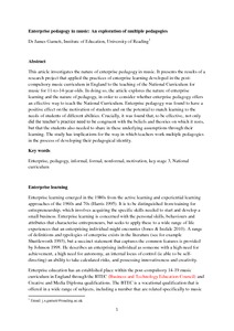 Garnett, J. (2013) Enterprise pedagogy in music: an exploration of multiple pedagogies. Music Education Research, 15 (1). pp. 1-18. ISSN 1469-9893 doi: 10.1080/14613808.2012.703175