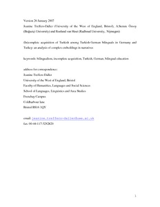 (In)Complete acquisition of Turkish among Turkish German bilinguals in Germany and Turkey: an analysis of complex embeddings in narratives
