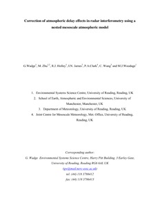 Wadge, G., Zhu, M., Holley, R. J., James, L. N., Clark, P. A., Wang, C. and Woodage, M. J. (2010) Correction of atmospheric delay effects in radar interferometry using a nested mesoscale atmospheric model. Journal of Applied Geophysics, 72 (2). pp. 141-149. ISSN 0926-9851 doi: 10.1016/j.jappgeo.2010.08.005