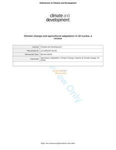 Uncontrolled Keywords Agriculture, Adaptation, Climate Change, Impacts of climate change, Sri Lanka