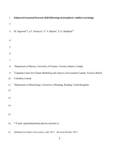 Enhanced seasonal forecast skill following stratospheric sudden warmings.