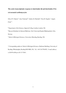 The early transcriptomic response to interleukin 1β and interleukin 33 in rat neonatal cardiomyocytes.