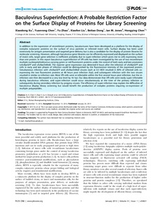 Xu, X., Chen, Y., Zhao, Y., Liu, X., Dong, B., Jones, I. M. ORCID: https://orcid.org/0000-0002-7738-2516 and Chen, H. (2013) Baculovirus superinfection: a probable restriction factor on the surface display of proteins for library screening. PLoS ONE, 8 (1). e54631. ISSN 1932-6203 doi: 10.1371/journal.pone.0054631