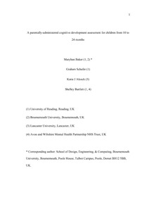 Baker, M., Schafer, G., Alcock, K. J. and Bartlett, S. (2013) A parentally-administered cognitive development assessment for children from 10 to 24 months. Infant Behavior and Development, 36 (2). pp. 279-287. ISSN 0163-6383 doi: 10.1016/j.infbeh.2013.01.007