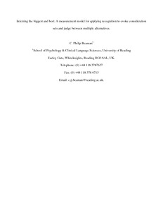 Inferring the biggest and best: a measurement model for applying recognition to evoke consideration sets and judge between multiple alternatives.