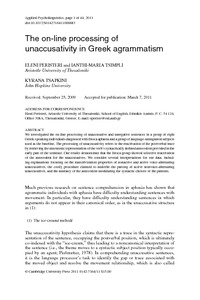 The on-line processing of unaccusativity in Greek agrammatism