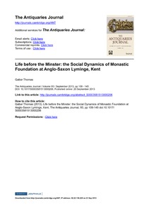 Life before the minster: the social dynamics of monastic foundation at Anglo-Saxon Lyminge, Kent.