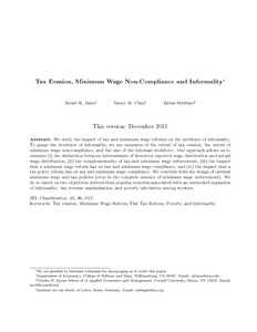 Basu, A. K., Chau, N. H. and Siddique, Z. (2012) Tax evasion, minimum wage noncompliance, and informality. Research in Labor Economics, 34. pp. 1-53. ISSN 0147-9121 doi: 10.1108/S0147-9121(2012)0000034004 (special issue 'Informal employment in emerging and transition economies')