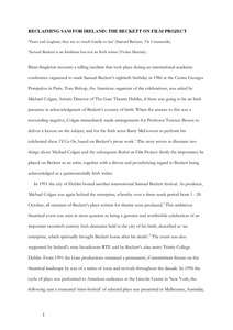 Saunders, G. (2007) Reclaiming Sam for Ireland: the Beckett on film project. In: Cave, R. and Levitas, B. (eds.) Irish Theatre in England. Irish Theatrical Diaspora (2). Carysfort Press, Dublin. ISBN 9781904505266