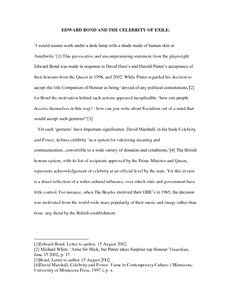Saunders, G. (2004) Edward Bond & the celebrity of exile. Theatre Research International, 29 (3). pp. 256-266. ISSN 1474-0672 doi: 10.1017/S0307883304000665