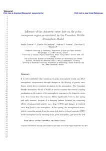 Influence of the Antarctic ozone hole on the polar mesopause region as simulated by the Canadian Middle Atmosphere Model.