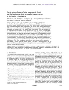 On the seasonal onset of polar mesospheric clouds and the breakdown of the stratospheric polar vortex in the Southern Hemisphere.