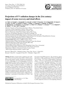 Bais, A. F., Tourpali, K., Kazantzidis, A., Akiyoshi, H., Bekki, S., Braesicke, P., Chipperfield, M. P., Dameris, M., Eyring, V., Garny, H., Jachetti, D., J¨ockel, P., Kubin, A., Langematz, U., Mancini, E., Michou, M., Morgenstern, O., Nakamura, T., Newman, P. A., Pitari, G., Plummer, D. A., Rozanov, E., Shepherd, T. G. ORCID: https://orcid.org/0000-0002-6631-9968, Shibata, K., Tian, W. and Yamashita, Y. (2011) Projections of UV radiation changes in the 21st century: impact of ozone recovery and cloud effects. Atmospheric Chemistry and Physics, 11 (15). pp. 7533-7545. ISSN 1680-7316 doi: 10.5194/acp-11-7533-2011
