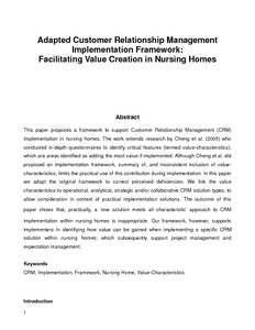 Adapted customer relationship management implementation framework:facilitating value creation in nursing homes.