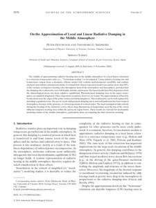 The validity of approximating radiative heating rates in the middle atmosphere by a local linear relaxation to a reference temperature state (i.e., ‘‘Newtonian cooling’’) is investigated. Using radiative heating rate and temperature output from a chemistry–climate model with realistic spatiotemporal variability and realistic chemical and radiative parameterizations, it is found that a linear regressionmodel can capture more than 80% of the variance in longwave heating rates throughout most of the stratosphere and mesosphere, provided that the damping rate is allowed to vary with height, latitude, and season. The linear model describes departures from the climatological mean, not from radiative equilibrium. Photochemical damping rates in the upper stratosphere are similarly diagnosed. Threeimportant exceptions, however, are found.The approximation of linearity breaks down near the edges of the polar vortices in both hemispheres. This nonlinearity can be well captured by including a quadratic term. The use of a scale-independentdamping rate is not well justified in the lower tropical stratosphere because of the presence of a broad spectrum of vertical scales. The local assumption fails entirely during the breakup of the Antarctic vortex, where large fluctuations in temperature near the top of the vortex influence longwave heating rates within the quiescent region below. These results are relevant for mechanistic modeling studies of the middle atmosphere, particularly those investigating the final Antarctic warming.