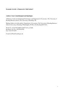 Kambhampati, U. S. ORCID: https://orcid.org/0000-0001-5906-2394 and Rajan, R. (2006) Economic growth: a panacea for child labour? World Development, 34 (3). pp. 426-445. ISSN 0305-750X doi: 10.1016/j.worlddev.2005.08.010