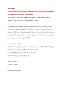 Jackson, K. ORCID: https://orcid.org/0000-0002-0070-3203, Walden, C., Murray, P., Smith, A., Minihane, A. M., Lovegrove, J. ORCID: https://orcid.org/0000-0001-7633-9455 and Williams, C. (2013) Greater impairment of postprandial triacylglycerol than glucose response in metabolic syndrome subjects with fasting hyperglycaemia. Metabolism: Clinical and Experimental, 62 (8). pp. 1065-1069. ISSN 0026-0495 doi: 10.1016/j.metabol.2013.03.001