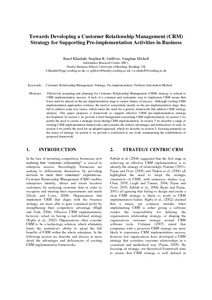 Effectively preparing and planning for Customer Relationship Management (CRM) strategy is critical to CRM implementation success. A lack of a common and systematic way to implement CRM means that focus must be placed on the pre-implementation stage to ensure chance of success. Although existing CRM implementation approaches evidence the need to concentrate mostly on the pre-implementation stage, they fail to address some key issues, which raises the need for a generic framework that address CRM strategy analysis. This paper proposes a framework to support effective CRM pre-implementation strategy development.
