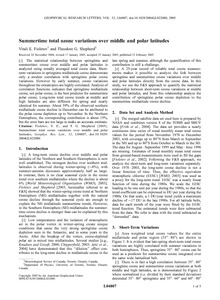 The statistical relationship between springtime and summertime ozone over middle and polar latitudes is analyzed using zonally averaged total ozone data. Shortterm variations in springtime midlatitude ozone demonstrate only a modest correlation with springtime polar ozone variations. However by early summer, ozone variations throughout the extratropics are highly correlated. Analysis of correlation functions indicates that springtime midlatitude ozone, not polar ozone, is the best predictor for summertime polar ozone. Long-term total ozone trends at middle and high latitudes are also different for spring and nearly identical for summer. About 39% of the observed southern midlatitude ozone decline in December can be attributed to the polar ozone depletion up to November. In the Northern Hemisphere, the corresponding contribution is about 15%, but the error bars are too large to make an accurate estimate.