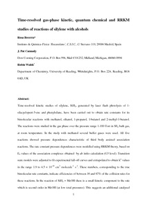 Time-resolved gas-phase kinetic, quantum chemical, and RRKM studies of reactions of silylene with alcohols