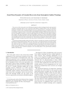Zonal-mean dynamics of extended recoveries from stratospheric sudden warmings.