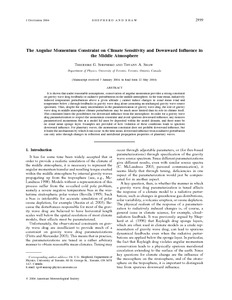 The angular momentum constraint on climate sensitivity and downward influence in the middle atmosphere.