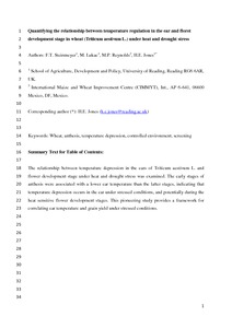 Quantifying the relationship between temperature regulation in the ear and floret development stage in wheat (Triticum aestivum L.) under heat and drought stress.