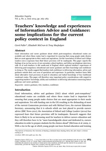Teachers’ knowledge and experiences of Information Advice and Guidance: some implications for the current policy context in England.
