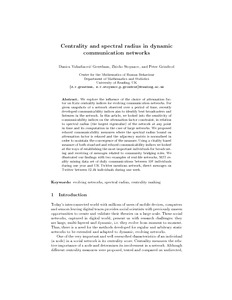 Vukadinovic Greetham, D., Stoyanov, Z. and Grindrod, P. (2013) Centrality and spectral radius in dynamic communication networks. In: CSoNet, COCOON 2013, LNCS 7936, 22 June 2013, Hangzhou, China, pp. 791-800.