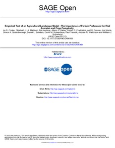 Cooke, I. R., Mattison, E. H. A., Audsley, E., Bailey, A. P., Freckleton, R. P., Graves, A. R., Morris, J., Queensborough, S. A., Sanders, D. L., Siriwardena, G. M., Trawick, P., Watkinson, A. R. and Sutherland, W. J. (2013) Empirical test of an agricultural landscape model: the importance of farmer preference for risk aversion and crop complexity. Sage Open, 3 (2). ISSN 2158-2440 doi: 10.1177/2158244013486491