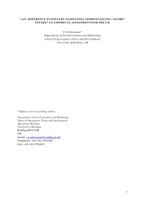 Rennie, K., Coward, A., Jebb, S., 2007. Estimating under-reporting of energy intake in dietary surveys using an individualised method. British Journal of Nutrition 97, 1169-1176.