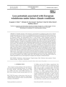 Pinto, J. G., Karremann, M. K., Born, K., Della-Marta, P. M. and Klawa, M. (2012) Loss potentials associated with European windstorms under future climate conditions. Climate Research, 54 (1). pp. 1-20. ISSN 0936-577X doi: 10.3354/cr01111