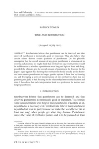 Tomlin, P. (2014) Time and retribution. Law and Philosophy, 33 (5). pp. 655-682. ISSN 0167-5249 doi: 10.1007/s10982-013-9196-z