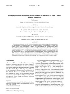 Ulbrich, U., Pinto, J. G., Kupfer, H., Leckebusch, G. C., Spangehl, T. and Reyers, M. (2008) Changing Northern Hemisphere storm tracks in an ensemble of IPCC climate change simulations. Journal of Climate, 21 (8). pp. 1669-1679. ISSN 1520-0442 doi: 10.1175/2007JCLI1992.1