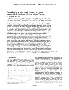 Rae, I. J., Kabin, K., Lu, J. Y., Rankin, R., Milan, S. E., Fenrich, F. R., Watt, C. E. J., Zhang, J.-C., Ridley, A. J., Gombosi, T. I., Clauer, C. R., Tóth, G. and DeZeeuw, D. L. (2010) Comparison of the open-closed separatrix in a global magnetospheric simulation with observations: the role of the ring current. Journal of Geophysical Research, 115. A08216. ISSN 0148-0227 doi: 10.1029/2009JA015068
