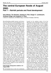 Record-breaking rainfall amounts and intensities were observed at several raingauges in central Europe during the first half of August 2002 (Fig. 1). They produced flash floods in small rivers in the Erz Mountains, the Bohemian Forest and in Lower Austria (see Fig. 2), followed by record-breaking floods of larger rivers fed from these areas. The Vltava submerged parts of the city of Prague on 13± 15 August, and subsequently the Elbe flooded parts of Dresden and further villages and towns located downstream. The gauge level of 9.40m measured at Dresden on 17 August 2002 is the highest level since 1275, exceeding the former maximum level of 8.77m recorded in 1845 (Grollmann and Simon 2002). Parts of the Danube catchment were also affected by severe flooding. There were 100 fatalities connected with the floods in central Europe, and the economic loss is estimated at 9 billion Euros for Germany (German government’s estimate), 3 billion Euros for Austria, and 2.5 billion Euros for the Czech Republic (estimates from Boyle 2002). The event thus replaced the European winter storm Lothar of December 1999 (Ulbrich et al. 2001) as the most expensive weather-related catastrophe in Europe in recent decades (see Cornford 2002). In this study, we give an overview of the exceptional rainfall experienced over wide areas on 12/13 August 2002, and the resulting floods. Further events during early August 2002, in particular the event on 6/7 August in Lower Austria, are briefly mentioned.
