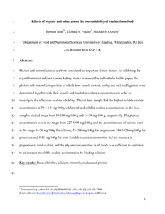 Effects of phytate and minerals on the bioavailability of oxalate from food.