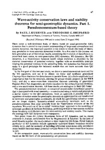There exists a well-developed body of theory based on quasi-geostrophic (QG) dynamics that is central to our present understanding of large-scale atmospheric and oceanic dynamics. An important question is the extent to which this body of theory may generalize to more accurate dynamical models. As a first step in this process, we here generalize a set of theoretical results, concerning the evolution of disturbances to prescribed basic states, to semi-geostrophic (SG) dynamics. SG dynamics, like QG dynamics, is a Hamiltonian balanced model whose evolution is described by the material conservation of potential vorticity, together with an invertibility principle relating the potential vorticity to the advecting fields. SG dynamics has features that make it a good prototype for balanced models that are more accurate than QG dynamics. In the first part of this two-part study, we derive a pseudomomentum invariant for the SG equations, and use it to obtain: (i) linear and nonlinear generalized Charney–Stern theorems for disturbances to parallel flows; (ii) a finite-amplitude local conservation law for the invariant, obeying the group-velocity property in the WKB limit; and (iii) a wave-mean-flow interaction theorem consisting of generalized Eliassen–Palm flux diagnostics, an elliptic equation for the stream-function tendency, and a non-acceleration theorem. All these results are analogous to their QG forms. The pseudomomentum invariant – a conserved second-order disturbance quantity that is associated with zonal symmetry – is constructed using a variational principle in a similar manner to the QG calculations. Such an approach is possible when the equations of motion under the geostrophic momentum approximation are transformed to isentropic and geostrophic coordinates, in which the ageostrophic advection terms are no longer explicit. Symmetry-related wave-activity invariants such as the pseudomomentum then arise naturally from the Hamiltonian structure of the SG equations. We avoid use of the so-called ‘massless layer’ approach to the modelling of isentropic gradients at the lower boundary, preferring instead to incorporate explicitly those boundary contributions into the wave-activity and stability results. This makes the analogy with QG dynamics most transparent. This paper treats the f-plane Boussinesq form of SG dynamics, and its recent extension to β-plane, compressible flow by Magnusdottir & Schubert. In the limit of small Rossby number, the results reduce to their respective QG forms. Novel features particular to SG dynamics include apparently unnoticed lateral boundary stability criteria in (i), and the necessity of including additional zonal-mean eddy correlation terms besides the zonal-mean potential vorticity fluxes in the wave-mean-flow balance in (iii). In the companion paper, wave-activity conservation laws and stability theorems based on the SG form of the pseudoenergy are presented.
