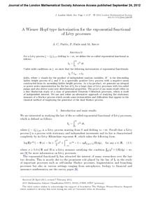 Pardo, J. C., Patie, P. and Savov, M. (2012) A Wiener-Hopf type factorization for the exponential functional of Levy processes. Journal of the London Mathematical Society, 86 (3). pp. 930-956. ISSN 1469-7750 doi: 10.1112/jlms/jds028