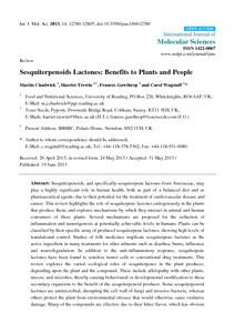 Chadwick, M., Trewin, H., Gawthrop, F. and Wagstaff, C. ORCID: https://orcid.org/0000-0001-9400-8641 (2013) Sesquiterpenoids lactones: benefits to plants and people. International Journal of Molecular Sciences, 14 (6). pp. 12780-12805. ISSN 1422-0067 doi: 10.3390/ijms140612780