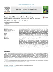 Weller, H. ORCID: https://orcid.org/0000-0003-4553-7082, Lock, S.-J. and Wood, N. (2013) Runge-Kutta IMEX schemes for the Horizontally Explicit/Vertically Implicit (HEVI) solution of wave equations. Journal of Computational Physics, 252. pp. 365-381. ISSN 0021-9991 doi: 10.1016/j.jcp.2013.06.025