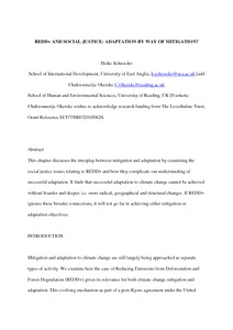 Schroeder, H. and Okereke, C. (2013) REDD+ and social justice: adaptation by way of mitigation? In: Moser, S. and Boykoff, M. (eds.) Successful adaptation to climate change: linking science and policy in a rapidly changing world. Routledge, Abingdon, pp. 81-94. ISBN 9780415524995