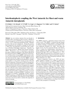 Holden, P. B., Edwards, N. R., Wolff, E. W., Lang, N. J., Singarayer, J. S., Valdes, P. J. and Stocker, T. F. (2010) Interhemispheric coupling, the West Antarctic Ice Sheet and warm Antarctic interglacials. Climate of the Past, 6 (4). pp. 431-443. ISSN 1814-9332 doi: 10.5194/cp-6-431-2010