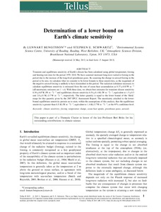 Bengtsson, L. and Schwartz, S. E. (2013) Determination of a lower bound on Earth’s climate sensitivity. Tellus B, 65. ISSN 1600-0889 doi: 10.3402/tellusb.v65i0.21533