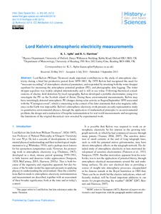 Aplin, K. L. and Harrison, R. G. ORCID: https://orcid.org/0000-0003-0693-347X (2013) Lord Kelvin’s atmospheric electricity measurements. History of Geo and Space Sciences, 4 (2). pp. 83-95. doi: 10.5194/hgss-4-83-2013