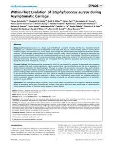Golubchik, T., Batty, E. M., Miller, R. R., Farr, H., Young, B. C., Larner-Svensson, H., Fung, R., Godwin, H., Knox, K., Votintseva, A., Everitt, R. G., Street, T., Cule, M., Ip, C. L. C., Didelot, X., Peto, T. E. A., Harding, R. M., Wilson, D. J., Crook, D. W. and Bowden, R. (2013) Within-host evolution of Staphylococcus aureus during asymptomatic carriage. PLoS ONE, 8 (5). e61319. ISSN 1932-6203 doi: 10.1371/journal.pone.0061319